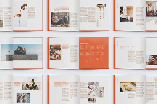 I redesigned the annual report for the world’s largest food and beverage company, Nestlé. In the annual report, I decided to use orange color to connect with the brand’s positive image and keep the report consistent. I designed and organized a clean layout to display essential financials and information about the company. This project approaches basic typographic principles and explores new innovative ways to communicate with text and images.